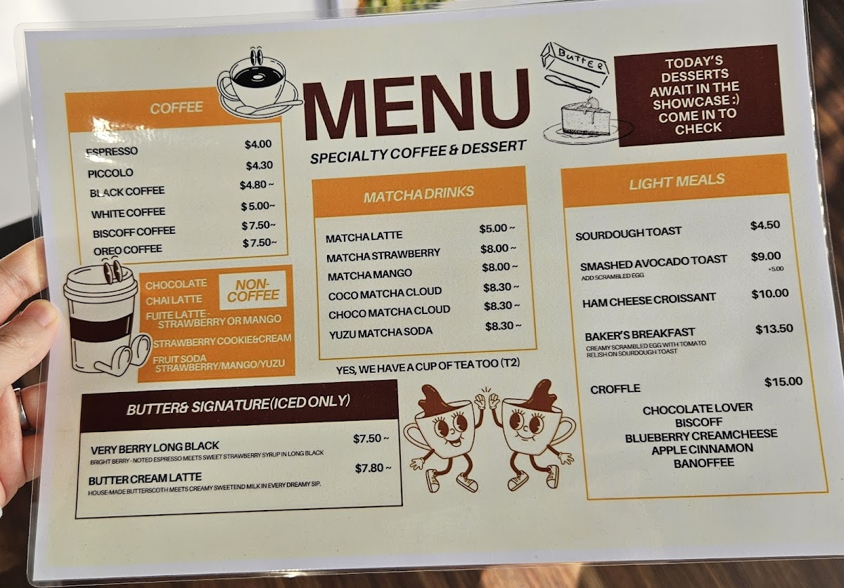 Welcome to Butter&, a delightful café nestled in Woolloongabba, QLD. This charming spot has quickly become a favorite for locals and visitors alike, offering a menu brimming with tantalizing options. Start with their renowned butter latte, a perfect harmony of sweetness and creamy texture, or indulge in a rich buttercream latte that has voice echoed across many glowing reviews. Delve into the delectable offerings, such as the ham and cheese croissant and the smashed avocado on fresh sourdough, both ideal for light meals. For those seeking something sweeter, their butter bars and vibrant fruit lattes, including matcha strawberry or mango, are not to be missed. The cozy atmosphere, complemented by friendly service, makes every visit a delightful experience.